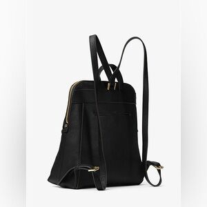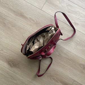 Stylish Michael Kors backpack in rich wine leather. Features sleek design and gold-tone accents. Ideal for everyday use.