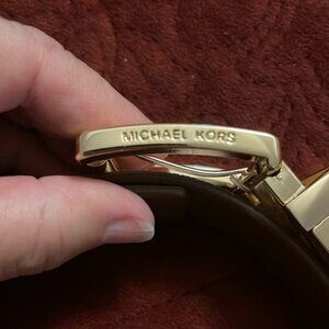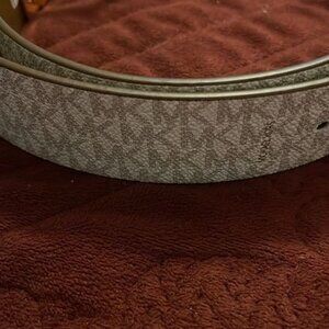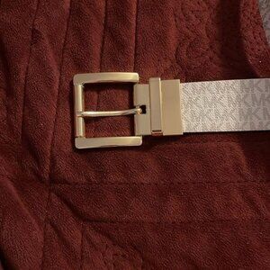 NWOT Heavy buckle Michael Kors Signature Leather MK Gray, then Brown Reverseable Belt 36” MICHAEL KORS stamped 5 times along the belt along with the signature MK allover print. Unworn, just tried on a couple of times.