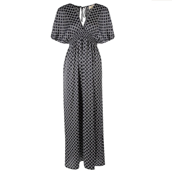 NWOT Michael Kors Sz XL Navy Blue Circle Print Pattern Empire Waist Maxi Dress