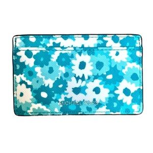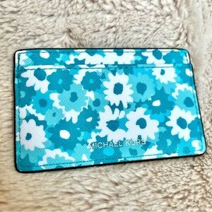 NWOT Michael Kors Teal Floral Leather Card Holder