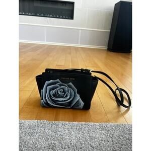 This is a new without tags Michael Kors small black handbag. It comes with an outer case for protecting it. The purse has a black background with a gray rose design on it. This purse is perfect for carrying just the essentials!
