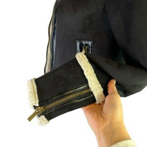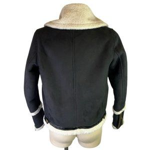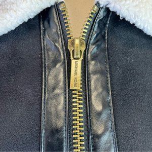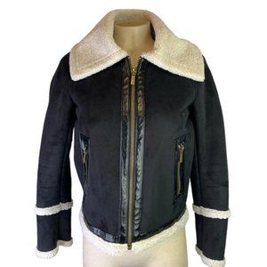 NWOT Michael Michael Kors Black/Bone Aviator Jacket Faux Suede Sherpa Size XS