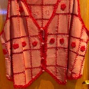 NWOT Michael Mims Kathy Cole 100% Genuine Leather Suede Red/Pink V-Neck Vest