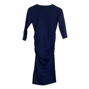 NWOT Michael Stars 3/4 Sleeve Ruched Sides Knit Midi Dress in Navy Sz. MP