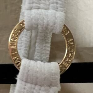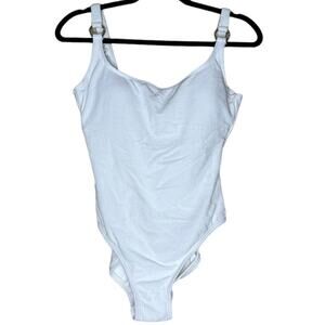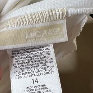 NWOT Micheal Micheal Kors Embellished Textured Stretch Swimsuit White Womans size 14 Gold Ring Embellishment at shoulder swim summer cute swimwear swimming bathingsuit