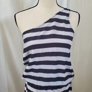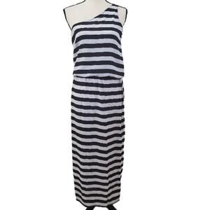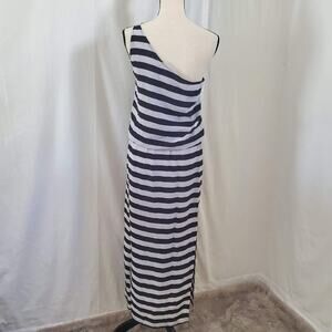 NWOT! Mikoh Striped 100% Silk One Shoulder Beach Maxi, Size 1 (S), Black and White, MSRP $200 Perfect for Beach and Casual Wear