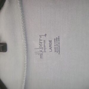 NWOT Milkberry pjs. 2 piece set. Button front top with chest pocket and short sleeves. Elastic waist pants. Super soft/stretchy material. Sage in color. Bust measures 20 inches and the length from shoulder to hem is 24 inches. The waist measurement on the pants is 14 inches unstretched. The inseam is 23 inches. Measured flat. So nice in a size L.