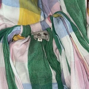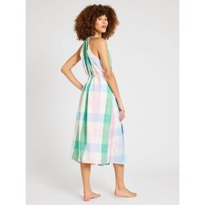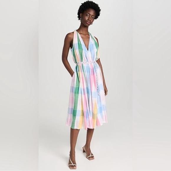 NWOT Mille Marilyn Plaid Pastel Midi Cotton Dress Pockets Resort Belt Sz S