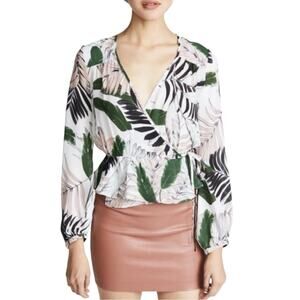 NWOT Milly Kia Tropical Print Silk Long Sleeve Wrap Top