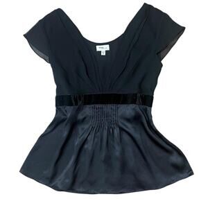 NWOT Mimi Maternity Black Silk Flutter Sleeve Gothic Loose Fit Babydoll Top M