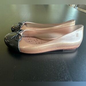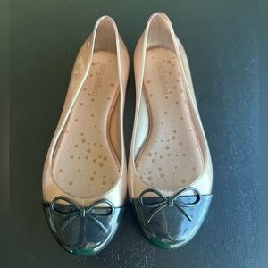 NWOT Mini Melissa Ultragirl Slip on Ballet Flats Nude and Black Captoe