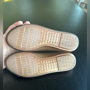 Elegant ballet flats with a glossy black toe and bow accent. Ideal for everyday style.