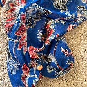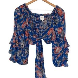 NWOT Misa Los Angeles Ancora Floral Tie Crop Top, Red, White, Blue, Sheer, Small