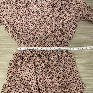 - tags: micro print, micro pattern, tile pattern, feminine, flirty, long sleeve dress, blouse dress, pink dress, pink mini dress, printed dress, patterned dress, boho dress, bohemian dress