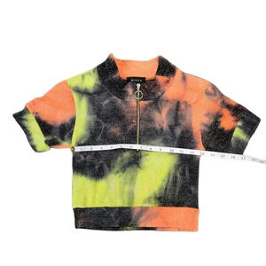 NWOT Misia Waffle Tie Dye Crop Top with half zip closure and turtle neck N1001