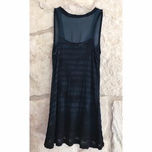 Adorable navy blue tank with semi sheer stripes and sheer straps. Rustic distressed look with beautiful rhinestones. Perfect for any country girl!