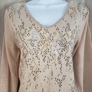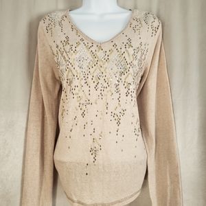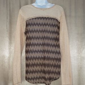 NWOT Miss Me tan sequined metallic lacy back sweater top Womens Medium