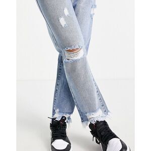 NWOT Missguided Petite Wrath Straight Leg Jeans with Rips in Light Wash Blue, 8S