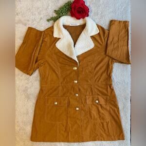 NWOT Misslook Button Up Sherpa Collar Jacket Color Tan Size Large