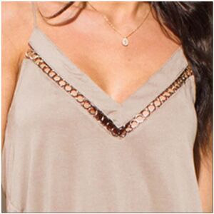 NWOT Mocha V-Neck Hoop Embellished Lace-Up Top