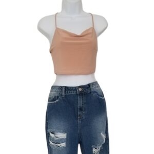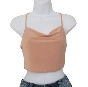 NWOT Mocking Jay Cowl Neck Cross-Back Crop Top Size Small.