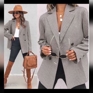 NWOT Mod Ref Recognition Pocketed Double Breasted Plaid Blazer