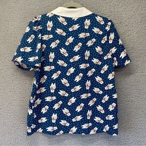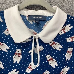 NWOT ModCloth Novelty Polar Bear All Over Print Short Sleeve Collar Top Sz M