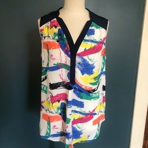 Navy/Multi Color Blouse from ModCloth. I took off the tags, but never wore it! 100% polyester. Size M