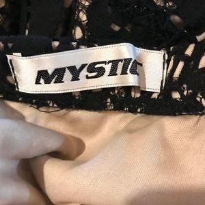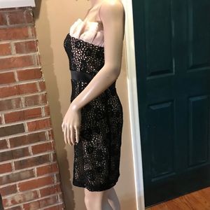 NWOT Modcloth | Mystic | Crochet Overlay Black Dress | Pink Ruffle Above Bodice