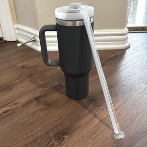 Large tumbler with straw to keep your beverages cold all day!