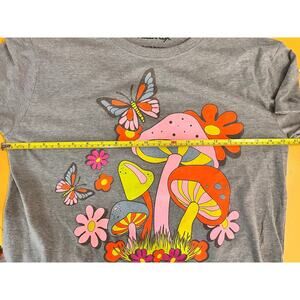 NWOT Modernlux Womens Retro Nature Vibes Top Flowers Mushrooms Print Gray Size L