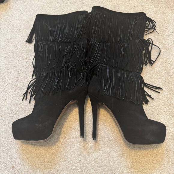 NWOT Mojo Moxy Genuine Leather Fringe Stiletto Boots