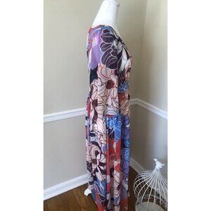 NWOT Molly Bracken Size S Bright Floral Maxi Dress Sheer 3/4 Sleeve Boho Retro