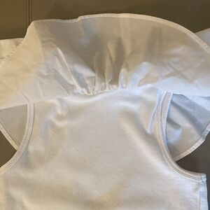 NWOT Molo girls’ Reca ruffle tank top in white. The “Reca” combo tank top has an oversized ruffle at the front with a round neckline.