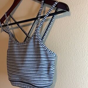 NWOT Monochrome Tiramisu Sports Bra Medium Striped Cross Back Stretchy Strappy