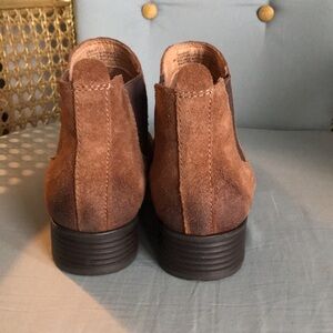 NWOT Montana, brown suede, pull on ankle boots. Slouch front, minimalist design, round toe, elastic sides. comfy.