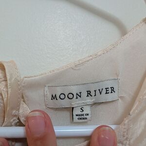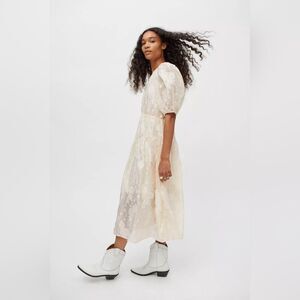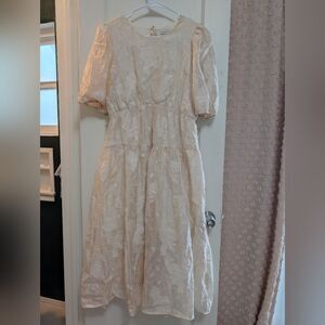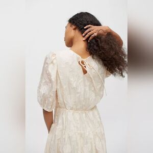 NWOT Moon River Tiered Midi Dress Cream Embroidered Size Small Puff Sleeve