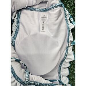 [141] The NWOT Mooslover Teal High Waisted Bandeau Bikini is a stylish and flattering two-piece swimsuit for women in size M. The bandeau top style and high-waisted bottom give it a sleek and on-trend look, while the floral pattern adds a touch of personality. The vibrant teal color is perfect for standing out by the pool or beach, making it a must-have addition to your swimsuit collection.