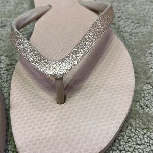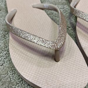 NWOT Mossimo Supply Co. S 6-7 Gold Glitter Sandals with Khaki Thong base for Summer wear with dresses or swim attire!
