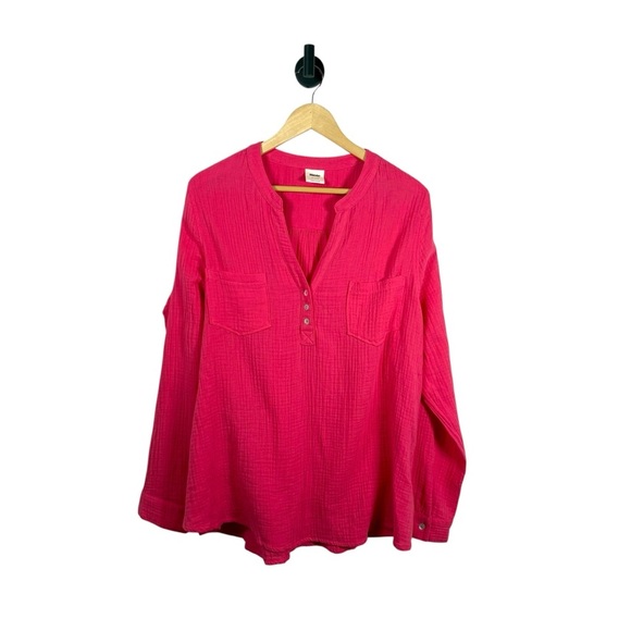 NWOT Mote Women’s Gauzy Cotton Tunic Henley in Pink Size XXL