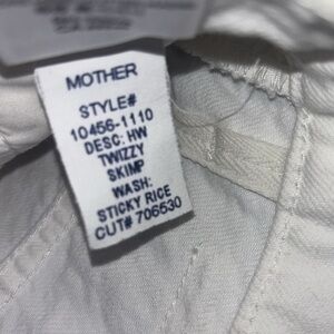 High-waisted Twizzy Skimp in sticky rice white by Mother. A straight-leg jeans from Snacks! Mother’s homage to throwback styles of the 80s and 90s. The high-rise jeans feature a slightly v-shaped waistband, loose fit. Made from rigid 100% cotton, Sticky Rice is a clean white hue.