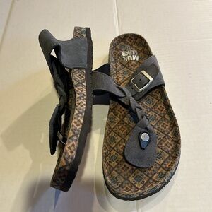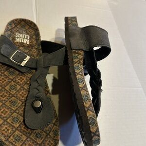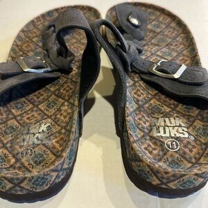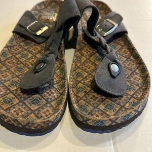 NWOT Muk Luks Marsha thong sandals in grey w patterned design adjustable strap