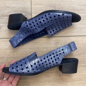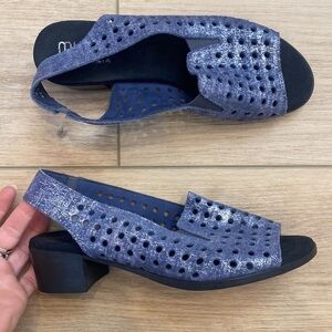 NWOT Munro | Mickee | Metallic Blue Suede Cutout Sling Back Cuban Heel S…