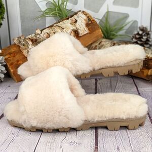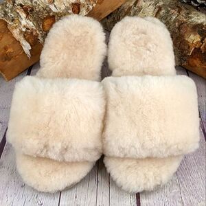 🐏100% Australian sheepskin: So comfy and plush slipper, made with 100% Australian Sheepskin upper, lining and footbed, feature an open toe design with crisscross straps