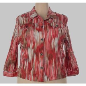 NWOT N Touch petite button front red white brown size 14 jacket