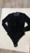 This sleek black bodysuit offers a sophisticated look with its long sleeves and elegant design. Perfect for any occasion.