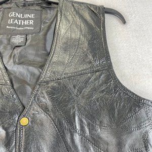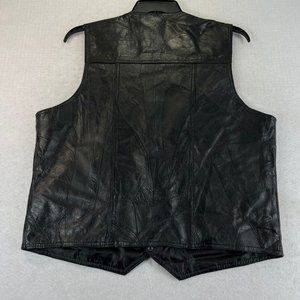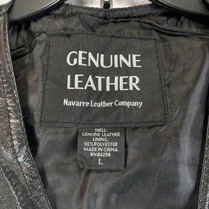 NWOT NAVARRE LEATHER CO Mens L Black Leather Motorcycle Biker Snap Up Vest