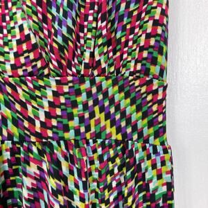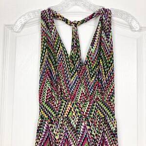 NWOT NEESHA Dress M/L Geo Halter Cross Back Smocked Maxi Stretch Multicolor