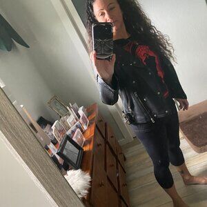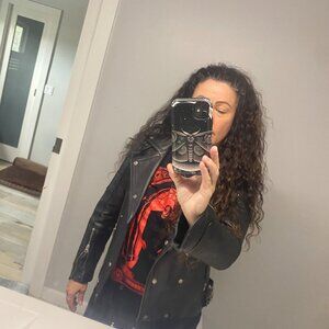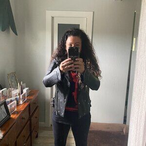 I have a NWOT NEVER WORN Black REAL LEATHER Slim Fit Quilted Motorcycle Biker Jacket for sale! Handmade in India. Pristine condition, as never worn! I am a 6-8 muscly athletic, B cup on top. Fits me perfectly- which is hard to find. Not too heavy. Sized womenʻs MEDIUM. I can give you exact measurements if you ask!