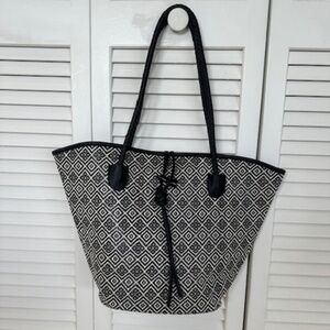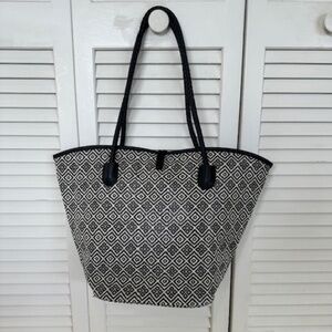 (NWOT) NEW NEIMAN MARCUS LARGE BLACK AND WHITE TOTE BAG W/ THICK STRAPS